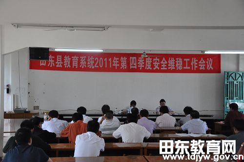 10月10日上午,县教育局在四楼会议室召开教育系统2011年第四季度安全维稳工作会议。局党组书记韦昌东书记,分管副局长甘忠校,县直、乡镇各中心校和初中校长、主任参加会议。会议主要就教育系统存在的安全隐患问题进行通报,并对下一步的工作进行部署。会议由甘副局长主持。