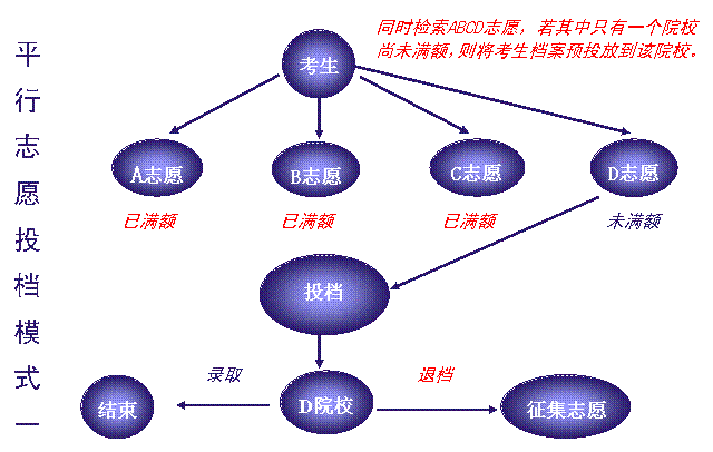 平行的另一个含意是,对招生院校而言,不管考生是被投到ABCD哪个院校,都是学校的一志愿考生。