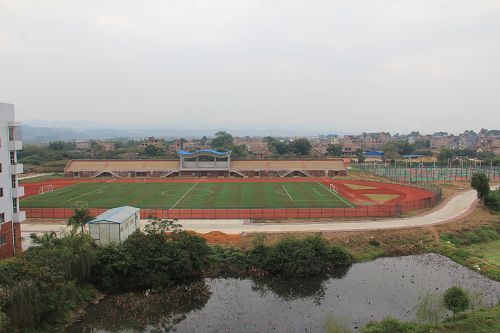 该运动场建于2009年,属于我校扩建二期工程项目之一,共有工程总造价1277万元。内有标准400米人工塑胶跑道,人工塑胶草坪,6个标准篮球场,2个网球场。此外,运动场看台下面还有100米室内跑道(4道)。